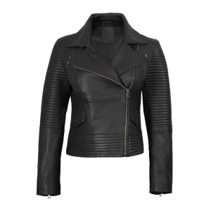 Black Women’s Leather Biker Jacket with Style Padded Panels