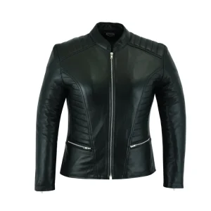 This women’s Café Racer leather motorcycle jacket is designed for riders who prefer a clean, minimalist look with a sporty