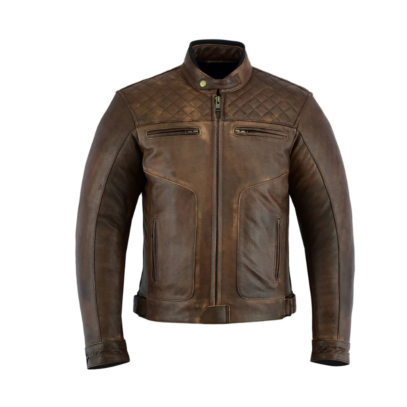 Home Motorbike Men Diamond Stitched Brown Leather Motorcycle Jacket